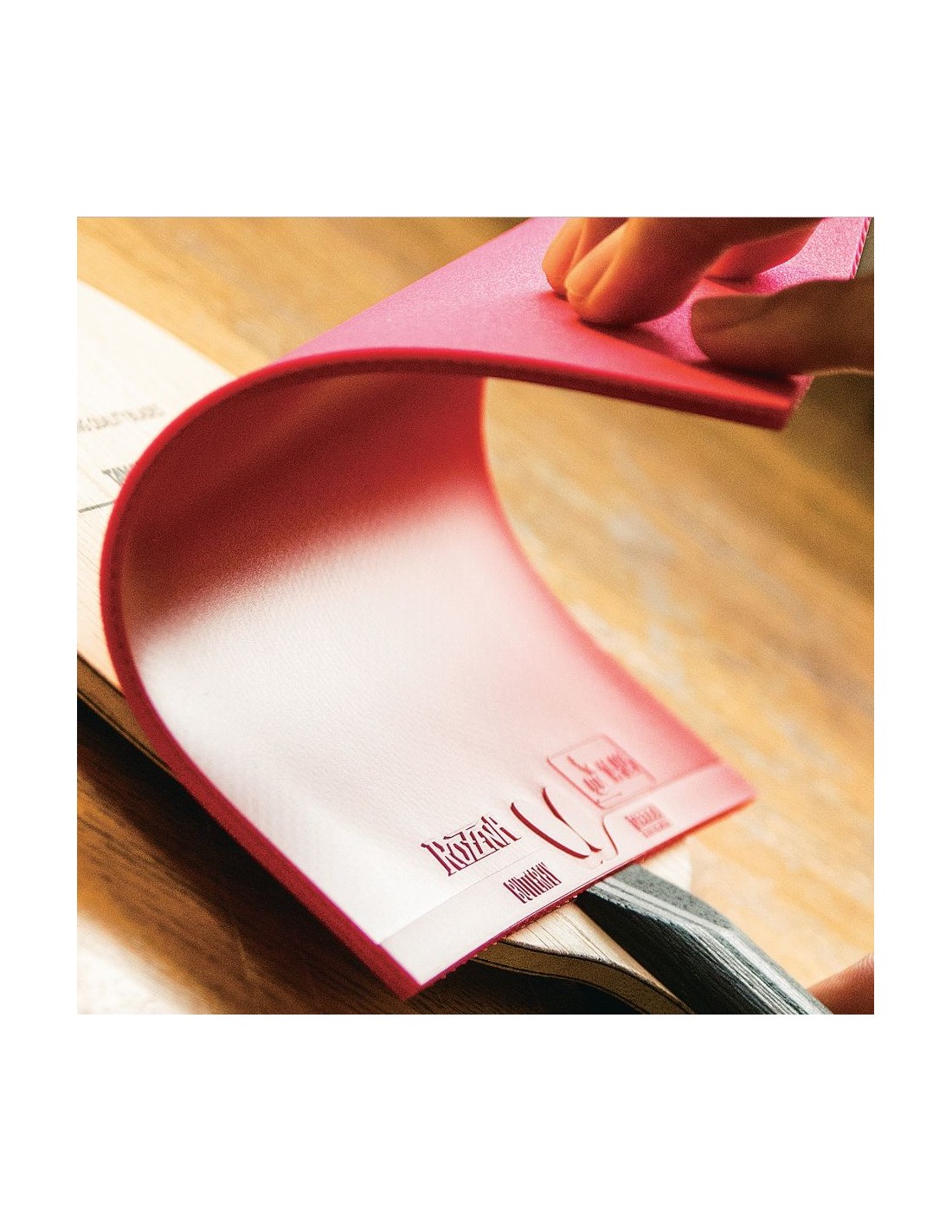 Okładziny z deską sklejamy klejem wodnym naklejając czerwoną okładzinę na stronę z nadrukami na główce deski (jeżeli chcą Państwo inną konfigurację, to prosimy o wpisanie takiej uwagi w okienku komentarza w formularzu zamówienia).