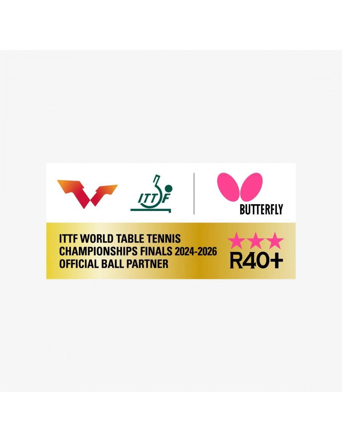 Trzecia generacja piłek turniejowych Butterfly, wynik ciągłych ulepszeń i starań o spełnienie oczekiwań zawodników. Piłki R40+ cechuje wysoka precyzja, jednolite odbicie i przewidywalna trajektoria lotu. Opakowanie zawiera 3 piłki. Kolor: biały.
