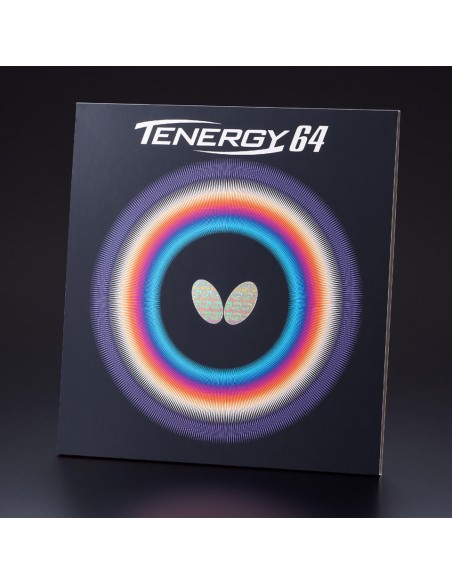 Tenergy 64 to to najszybsza ze wszystkich okładzin Tenergy - prototyp o większej wysokości czopów oraz większym odstępie pomiędzy nimi okazał się tą okładziną, która umożliwia nadanie piłce największej szybkości nie tylko pośród Tenergy, ale też wśród wszystkich okładzin Butterfly (szybkość mierzona przy rakietce). Najdłuższe czopy w całej serii Tenergy.
