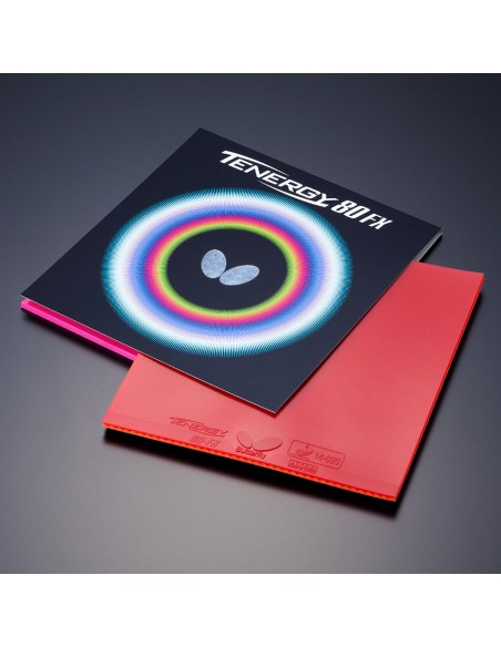 Tenergy 80 FX to zbilansowanie szybkości Tenergy 64 i rotacji Tenergy 05 w wersji z bardziej miękkim podkładem - ta okładzina została stworzona specjalnie, aby połączyć zalety dwóch ekstremalnych Tenergy - najszybszej i najbardziej rotacyjnej. Zostało to osiagnięte przez zastosowanie czopów o tej samej szerokości co w przypadku Tenergy 05 i Tenergy 64 (1,7 mm), ale ich wysokość i rozstaw jest wypośrodkowaniem parametrów okładzin wyjściowych.