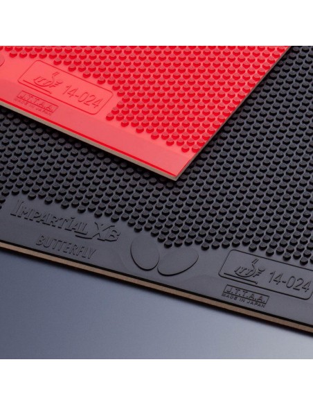 Okładzina Impartial XB łaczy nieco twardsze i technologicznie zaawansowane czopy z elastycznym podkładem wyposażonym w technologię High Tension. Rezultatem są krótkie czopy o wyjątkowej dynamice. Impartial XB zapewnia idealne wyważenie pomiędzy miękkim podkładem i twardszą warstwą zewnętrzną, co przydaje się w grze pasywnej blokiem i ofensywnych uderzeniach. Dobra kontrola pasywna i wysoka szybkość są wspaniałym wsparciem w grze ofensywnej blisko stołu.