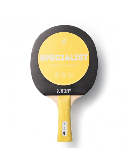 Rakietka Specialist stwarza możliwość stosowania nowoczesnej gry ofensywnej zawodnikom o wystarczającym poziomie umiejętności i doświadczenia. Precyzyjne nadawanie rotacji piłce, szybkie uderzenia i dokładne umiejscawianie piłki - te i inne umiejętności są wspierane przez rakietkę Specialist. Dostępna wyłącznie z uchwytem wklęsłym (FL).
