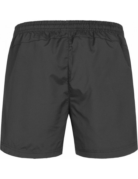 Dziecięca wersja spodenek Apego. Kolor czarny. Atrakcyjne, lekkie spodenki o eleganckim wzornictwie. Uniwersalne pod względem dopasowania do reszty ubioru. Funkcjonalne i łatwe do czyszczenia. Dwie kieszenie zapinane na zamek błyskawiczny. Sznurek ściągający w pasie. Materiał: Dimple Dry Fit (100% Poliester).