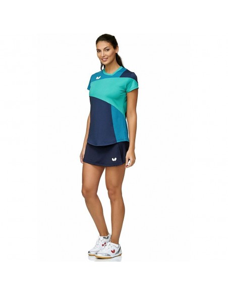 Wygodna granatowa spódniczka sportowa o kopertowym kroju. Elegancka, elastyczna tkanina, łatwa w czyszczeniu. Z wewnętrznymi, elastycznymi spodenkami doszytymi do spódniczki. Występuje w kilku wersjach kolorystycznych i różnych cenach (ciemnoszara i bordowa w obniżonej cenie). Materiał: Cool Dry Lycra (92% Poliester / 8% Spandex).