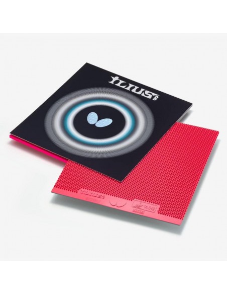 Ilius B jest okładziną z długimi czopami, która jako pierwsza została wzbogacona o technologię Absorber Sponge Drop opracowaną przez Butterfly. Warstwa zewnętrzna jest relatywnie twarda z czopami o maksymalnych proporcjach dopuszczonych przepisami. Połączenie tego typu warstwy zewnętrznej z nową technologią Absorber Sponge Drop wspiera doskonale grę znad stołu, zwłaszcza podcięciem. Dodatkowo umożliwia zarówno grę ofensywną, jak i defensywną wykorzystując zalety długich czopów, zwłaszcza przy uderzeniach z backhandu o minimalnej rotacji.