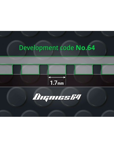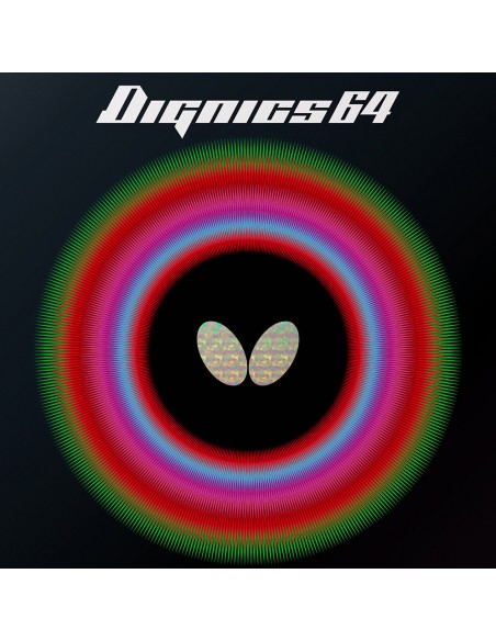 DIGNICS 64 to połączenie nowego i ulepszonego podkładu typu Spring Sponge X z zaawansowaną technologicznie warstwą zewnętrzną o strukturze czopów „Code 64” typową dla Tenergy 64. Jak wszystkie okładziny Dignics pozwala na zdecydowanie dłuższe przytrzymanie piłki przy rakietce, co ułatwia nadanie piłce właściwego kierunku, większej rotacji i prędkości. Charakteryzuje się też znacznie zwiększoną trwałością i odpornością na ścieranie.