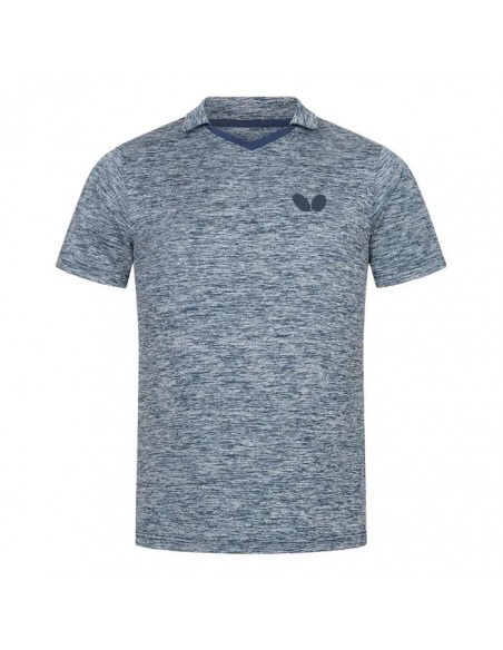 Koszulka z materiału Lycra Melange w kolorze niebieskiego melanżu, z krótkim kołnierzykiem i dekoltem w kształcie litery V. Lycra Melange to "oddychające" włókno zapewniające wyjątkowy komfort i dopasowanie. Całą kolekcję Izumo wyróżnia sportowa elegancja i komfort użytkowania - zastosowano miękkie i elastyczne materiały wysokiej jakości, a dopasowany krój nie krępuje ruchów. Jak wszystkie elementy kolekcji Izumo, koszulki noszą logo PRO, podkreślające ich profesjonalny charakter i ambicję spełnienia specyficznych oczekiwań gwiazd tenisa stołowego oraz innych osób uprawiających tę dyscyplinę sportu.