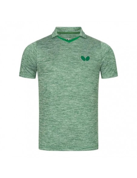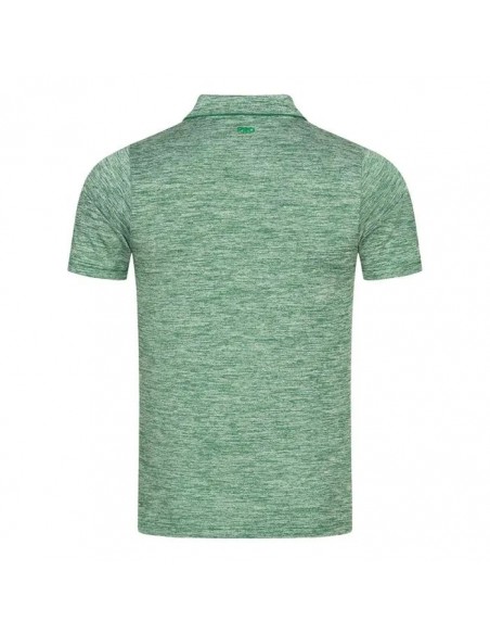 Koszulka z materiału Lycra Melange w kolorze zielonego melanżu, z krótkim kołnierzykiem i dekoltem w kształcie litery V. Lycra Melange to "oddychające" włókno zapewniające wyjątkowy komfort i dopasowanie. Całą kolekcję Izumo wyróżnia sportowa elegancja i komfort użytkowania - zastosowano miękkie i elastyczne materiały wysokiej jakości, a dopasowany krój nie krępuje ruchów. Jak wszystkie elementy kolekcji Izumo, koszulki noszą logo PRO, podkreślające ich profesjonalny charakter i ambicję spełnienia specyficznych oczekiwań gwiazd tenisa stołowego oraz innych osób uprawiających tę dyscyplinę sportu.
