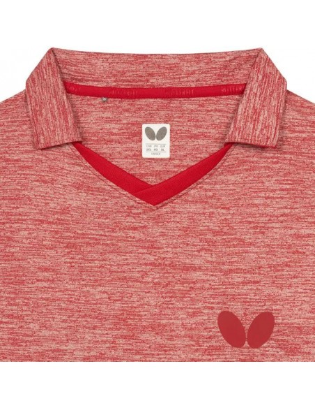 Koszulka z materiału Lycra Melange w kolorze czerwonego melanżu, z krótkim kołnierzykiem i dekoltem w kształcie litery V. Lycra Melange to "oddychające" włókno zapewniające wyjątkowy komfort i dopasowanie. Całą kolekcję Izumo wyróżnia sportowa elegancja i komfort użytkowania - zastosowano miękkie i elastyczne materiały wysokiej jakości, a dopasowany krój nie krępuje ruchów. Jak wszystkie elementy kolekcji Izumo, koszulki noszą logo PRO, podkreślające ich profesjonalny charakter i ambicję spełnienia specyficznych oczekiwań gwiazd tenisa stołowego oraz innych osób uprawiających tę dyscyplinę sportu.