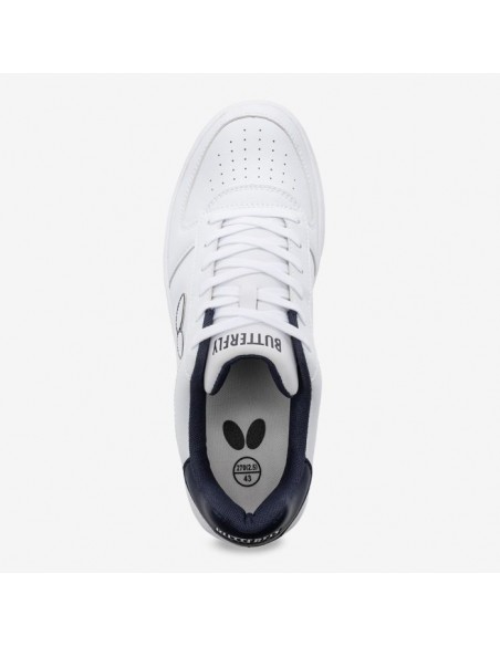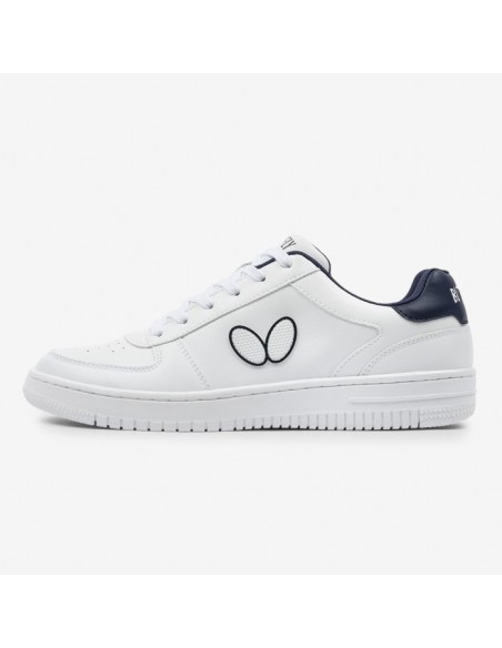 Sportowe, całkowicie białe sneakersy o oszczędnym wzornictwie. Miękkie, z gumową podeszwą, klasycznym sznurowaniem, tekstylną wyściółką i naszytym logo Butterfly. Gorna część buta została uszyta z farbowanej i tłoczonej skóry pokrytej warstwą poliuretanu. To wzmacnia odporność buta na wilgoć i zabrudzenia.