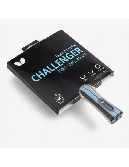 Gotowa rakietka Challenger firmy Butterfly wyróżnia się dobrą kontrolą, ale umożliwia też wykonywanie rotacyjnych i szybkich uderzeń. Została wyposażona w okładziny Addoy o grubości podkładu 1.7 mm z atestem ITTF. Jest to idealny wybór dla początkujących lub okazjonalnych graczy. Dostępna wyłącznie z uchwytem wklęsłym.