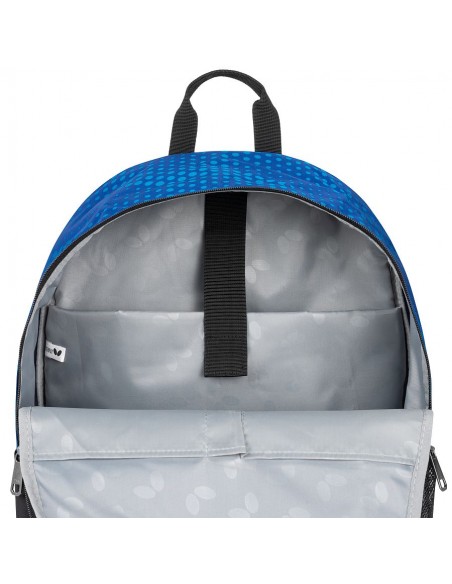 Plecak z wewnętrznymi przegródkami, zewnętrzną kieszenią na drobiazgi zamykaną na zamek błyskawiczny oraz regulowanymi paskami do noszenia. Jedna wersja kolorystyczna.