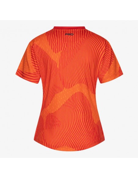 Damska wersja koszulki Kariya o kobiecym kroju - trójkątny dekolt, krótsze rękawki, wcięcie w talii i zaokrąglony dół. Elastyczna koszulka z Lycry o dynamicznym wzornictwie. Krój koszulki, przepuszczalność powietrza i odprowadzanie wilgoci wspierają aktywność sportową. Z tyłu napis PRO.