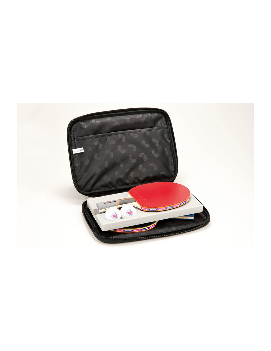 Pokrowiec z dwiema kieszeniami. Jedna służy do przechowywania rakietki i jest wyposażona w wkładkę zabezpieczającą rakietkę przed uszkodzeniem (wkładka ma wcięcie na piłeczki). Druga kieszeń może służyć do przechowywania akcesoriów np. folii ochronnych. Obie kieszenie zamykane na zamek błyskawiczny. Wykonany z wytrzymałego materiału Poliester 1620 D. Ostatnie zdjęcia poglądowe pokazują ułożenie rakietki w pokrowcu wyposażonym we wkładkę usztywniającą (nie pokazują konkretnego modelu pokrowca).