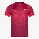 Czerwona koszulka ze złotymi detalami. Wzór na przodzie koszulki i rękawach, gładki tył. Wykonana z komfortowego i elastycznego materiału. Tworzy stylowy komplet z pozostałymi elementami kolekcji Puro.