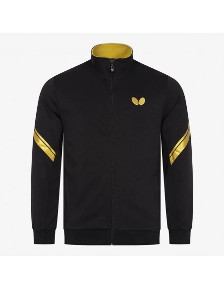 Dziecięca wersja bluzy Puro, dostępna w rozmiarze 152 cm. Klasyczna elegancja i miły w dotyku materiał. Czarna bluza ze złotymi elementami, w tym haftowanym złotym logo Butterfly. Długi zamek błyskawiczny, zapinane kieszenie i elastyczny ściągacz zapewniają funkcjonalność. Z tyłu napis PRO.