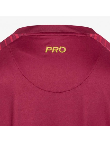 Dziecięca wersja koszulki Puro, dostępna w rozmiarze 152 cm. Czerwona koszulka ze złotymi detalami. Wzór na przodzie koszulki i rękawach, gładki tył. Wykonana z komfortowego i elastycznego materiału. Tworzy stylowy komplet z pozostałymi elementami kolekcji Puro.