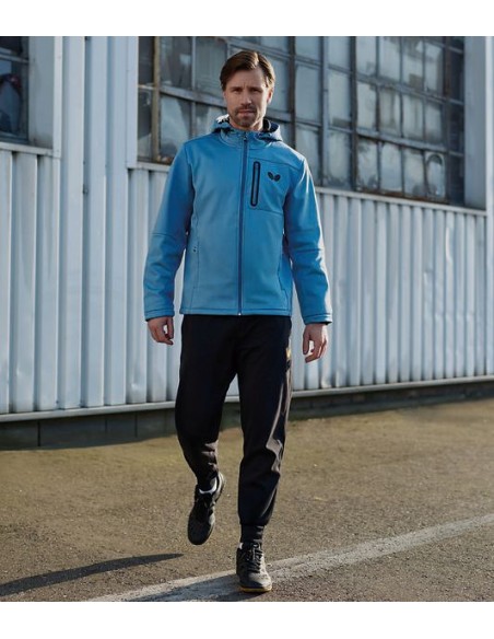 Lekka kurtka przejściowa. Funkcjonalny, miękki i "oddychający" materiał typu softshell zapewni ochronę przed chłodem i wiatrem oraz komfort noszenia. Miękka polarowa podszewka zapewnia ciepło i jest przyjemna dla skóry. Uzupełniona o kaptur i kieszenie zapinane na zamek. Kolor: szaro-niebieski. Materiał zewnętrzny: TPU Laminated Fleece (100% poliester). Podszewka: polar (100% poliester).